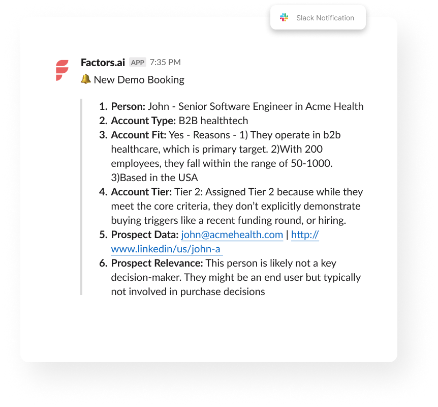 At Factors.ai, we map local SEO traffic to account-level signals, so you can see which companies in which regions are engaging. With this insight, you can turn region-based visibility into sales activation.