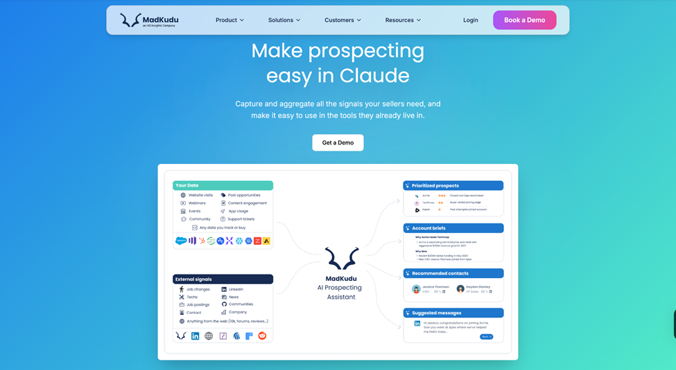 - Buyer Intelligence: Live intent signals help prioritize prospects who are actively looking to buy.