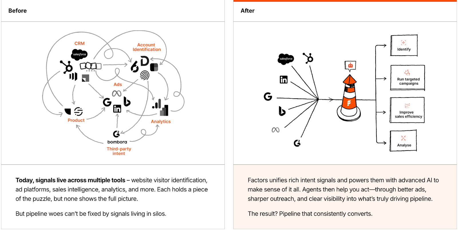 Both HockeyStack and Factors connect the dots here, but their approaches open up slightly different possibilities.
