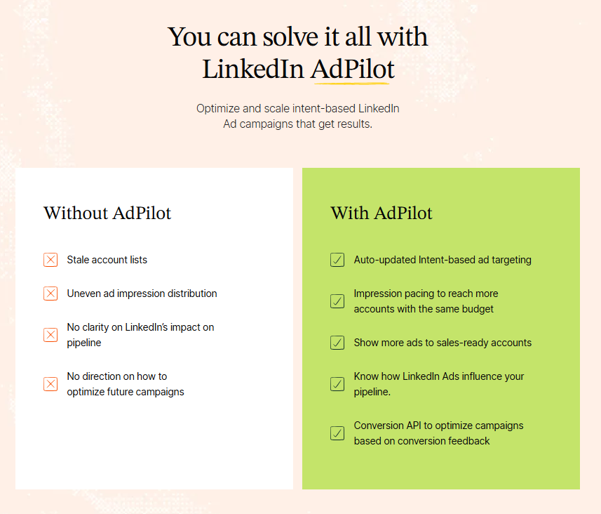- LinkedIn AdPilot: 2X your LinkedIn Ads ROI with Factors' LinkedIn AdPilot. Sync high-intent audiences, controlling ad impressions, automating campaigns, and measuring true ROI with view-through attribution.