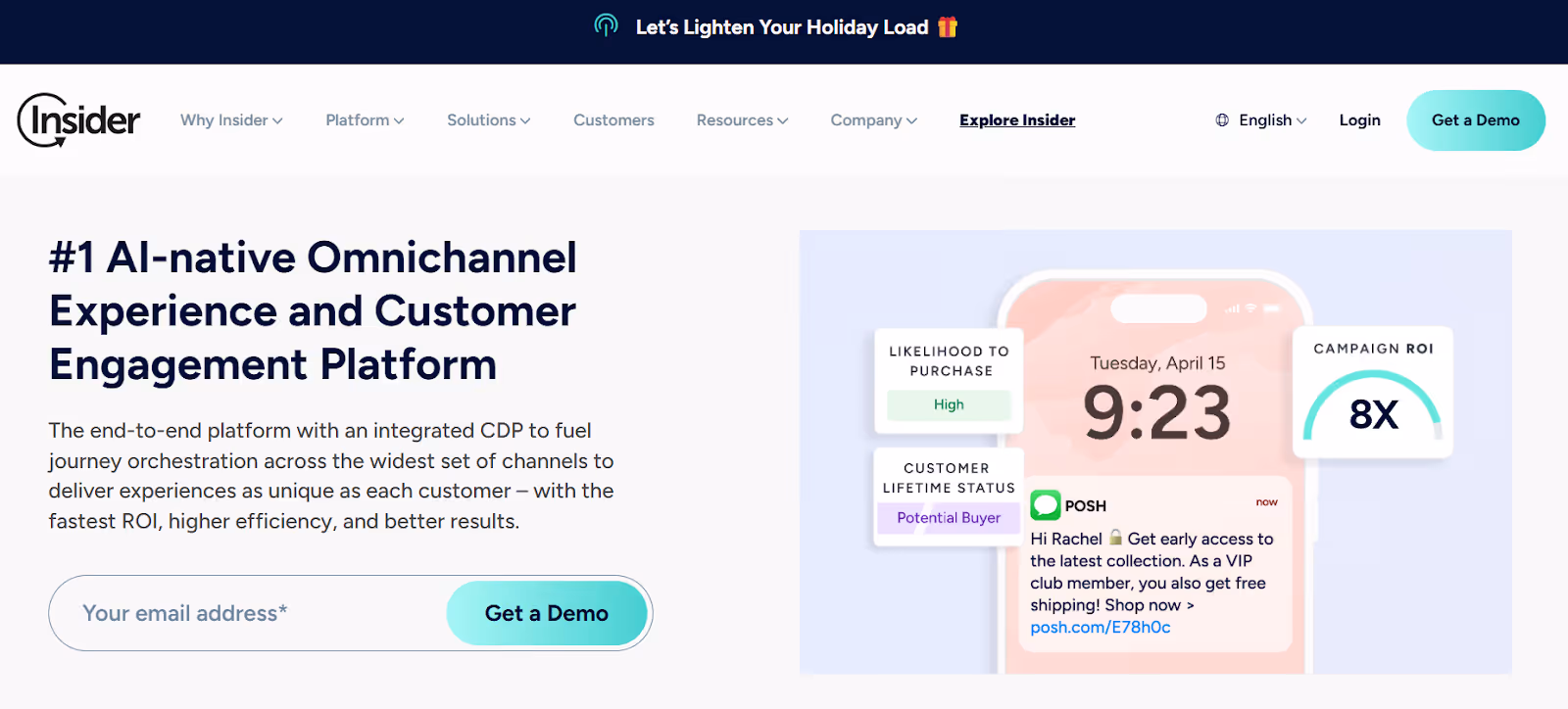 - Overview: Insider is an AI-native omnichannel experience and customer engagement platform with integrated CDP. Agent One uses specialized AI agents to create more humanlike customer interactions and automated decision-making. With generative AI, Sirius AI slashes manual effort by turning weeks of CX work into minutes, speeding up segmentation, journey orchestration, and automated copywriting.Covers email, SMS, WhatsApp, web push, mobile apps, site search from one platform