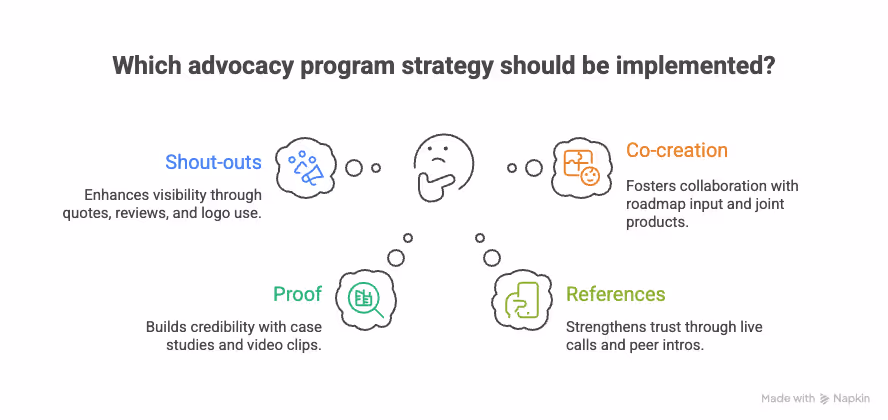 - Build a customer advisory board to gather quarterly feedback. Offer early access and public acknowledgements for their achievements.