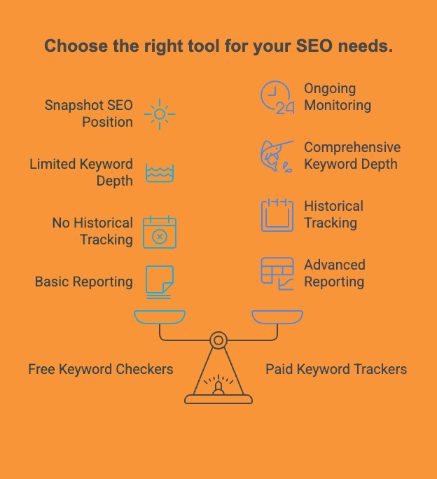 Note: Free checkers typically don’t handle historical data or multiple keywords at scale.