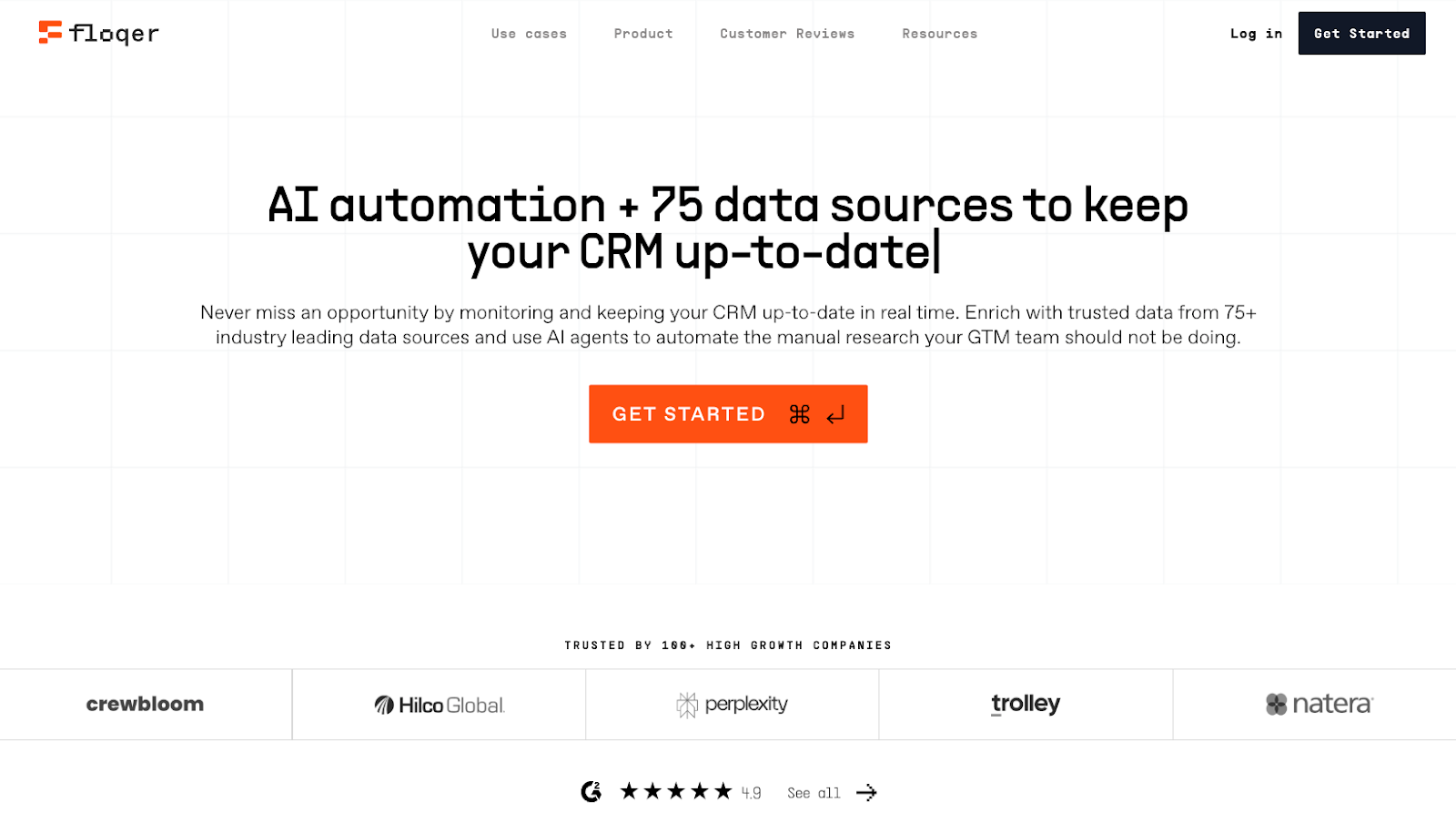 Floqer is an AI-powered GTM platform built to enrich CRM records and keep them clean, consistent, and up to date. Rated 4.9/5 on G2, it’s ideal for RevOps, Marketing, and Sales teams that prioritize accuracy, broad data coverage, and hands-on support.