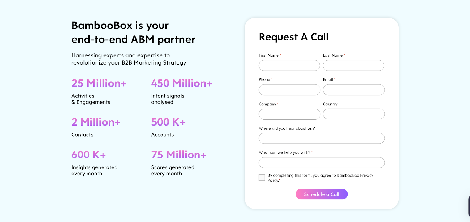 - Bamboobox, on the other hand, focuses on early-stage ABM orchestration with Bombora-powered intent data and basic LinkedIn audience targeting.