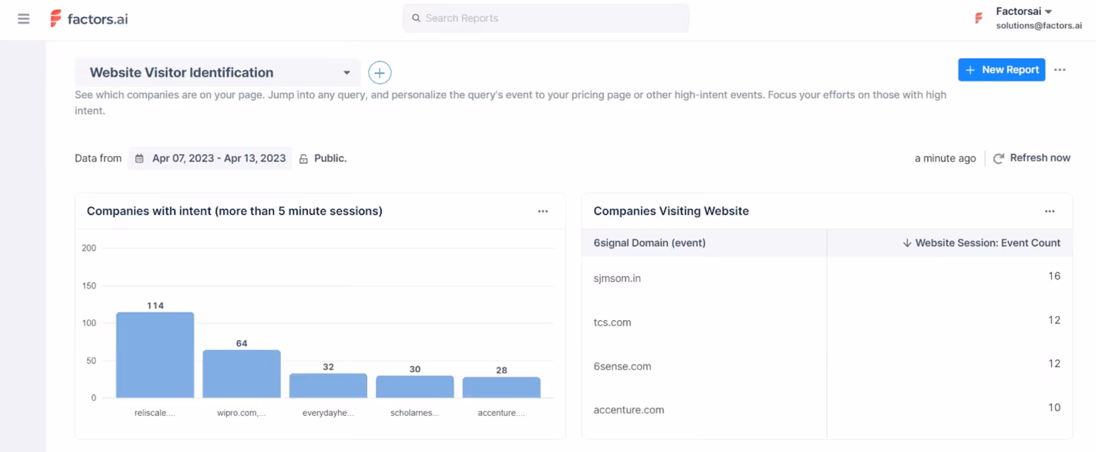 Instead of relying on a single data source, Factors uses a sequential enrichment model that combines Clearbit, Snitcher, Demandbase, and 6sense to match anonymous web traffic to known accounts. This increases match rates up to 75%, compared to the 8–10% typically covered by person-level tools.