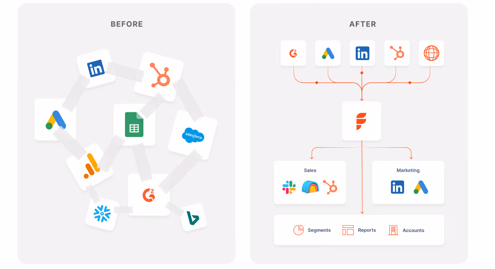 - Multi-source signals across product, ads, G2, CRM, and web.