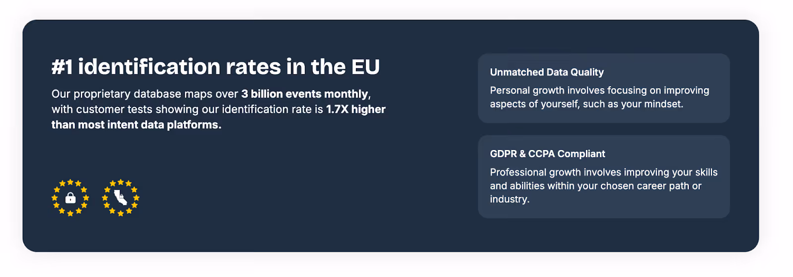 - High-intent account identification (match rates reported up to ~75% vs. 8–10% for person-level tools).