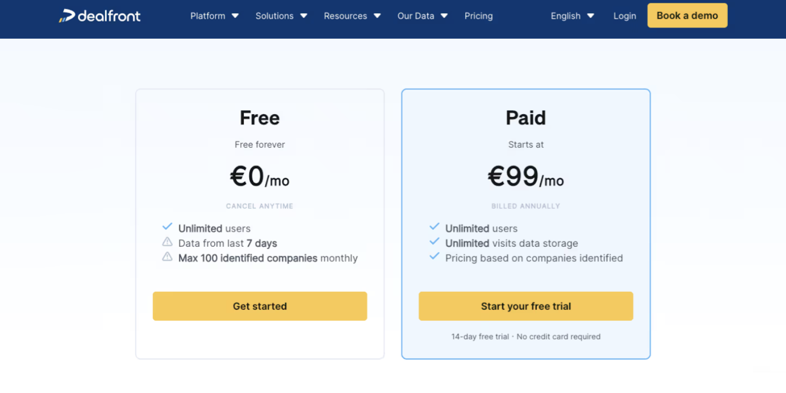 - No mobile app, and no real-time tracking for free users (updates hourly/below). Dealfront Help Center
