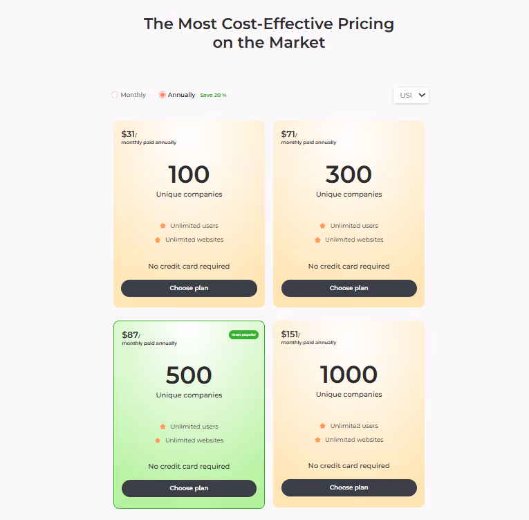 - The pricing is higher than most account intelligence tools since they charge with usage-based pricing
