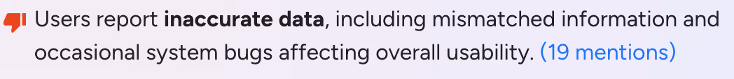 - Many users point out problems like inaccurate data, mismatched details, and system bugs that make the platform harder to use