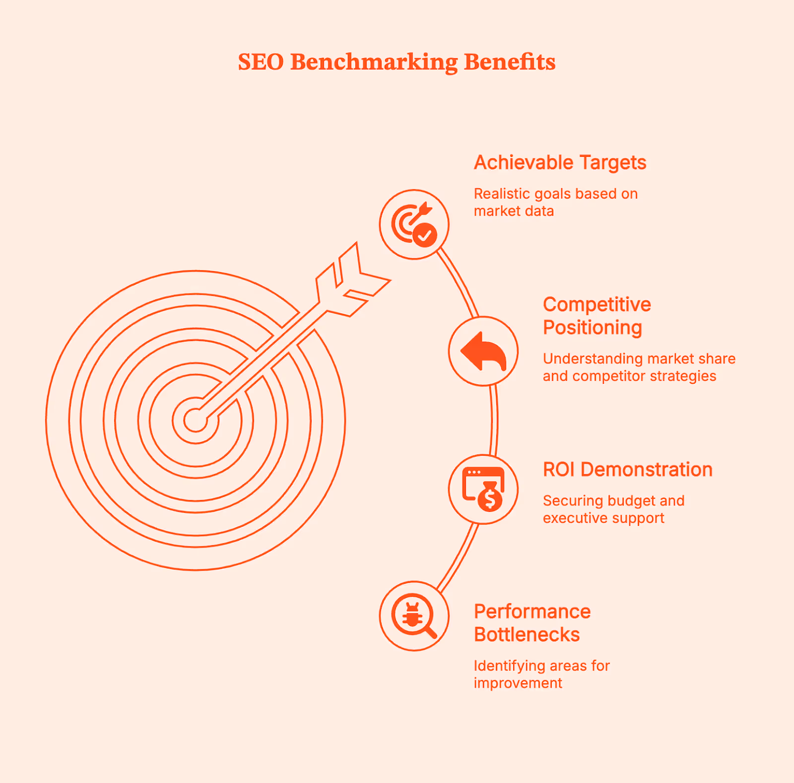 Benchmarking gives you the proof you need to secure budget, headcount, and executive support. Without hard numbers, search engine optimization SEO stays stuck in the "nice to have" category.