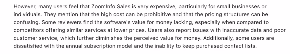Let’s look at a few G2 reviews that highlight why some teams begin exploring ZoomInfo alternatives:
