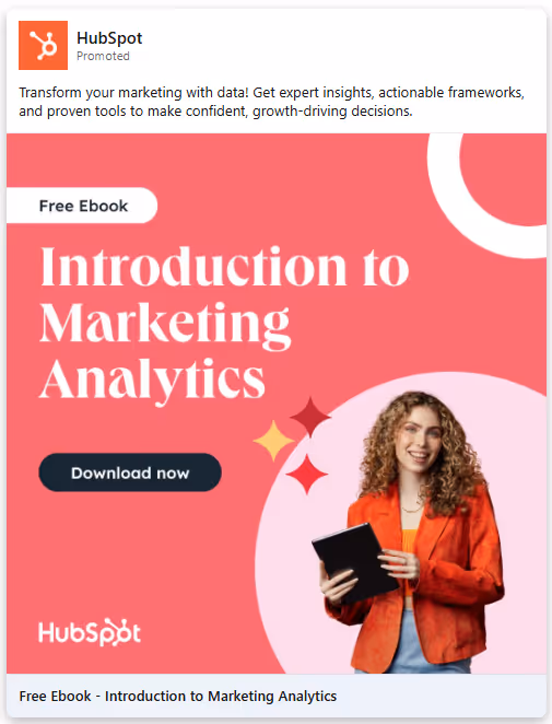 In the above example, Hubspot has used multiple Single Image Ads to promote an eBook,to push the target audience further down the funnel.